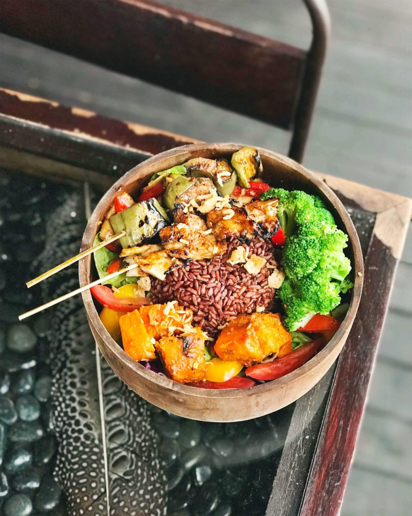 Typically it’s served with a sunny side up egg (love how the yolk runs into the rice!) and a side of fresh cucumber and tomato (no dressing) to make a meal of it.